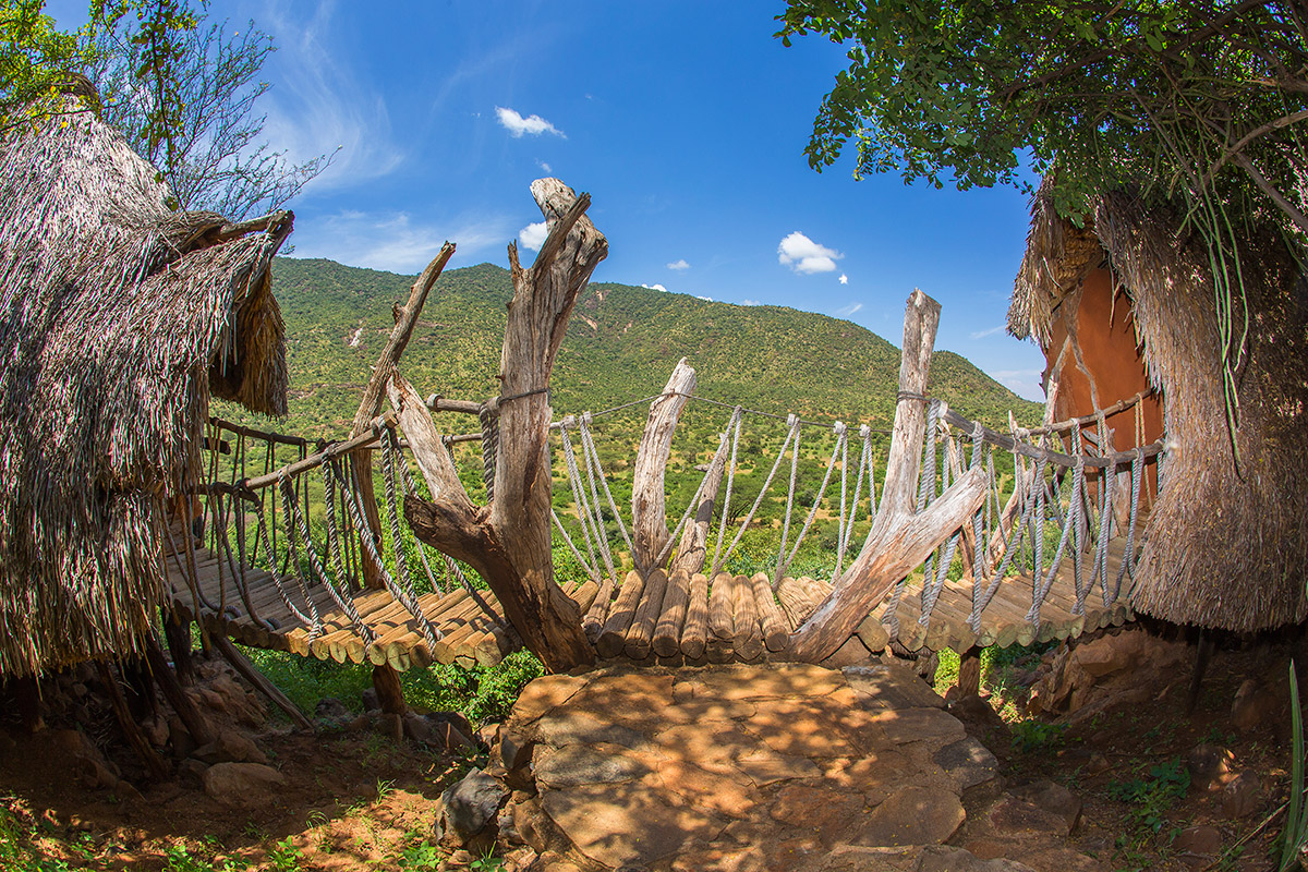 Constructed entirely out of local materials, the award-winning Il Ngwesi Lodge is perched on the edge of the Mararoi hills close to the Ngare Ndare river in Laikipia in Kenya, with breathtaking views towards Samburu as far as the eye can see.